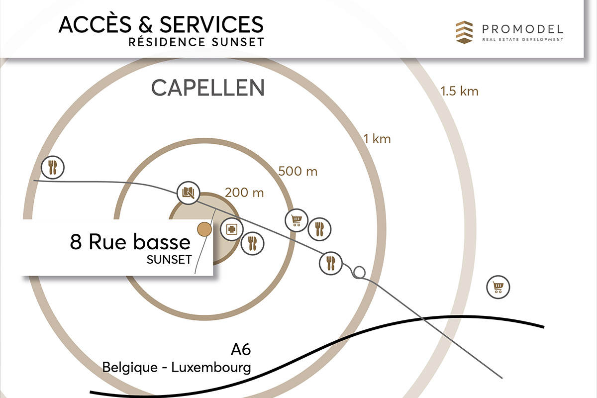 À 1,5 km de l’autoroute A6 reliant Luxembourg-Ville à la frontière belge