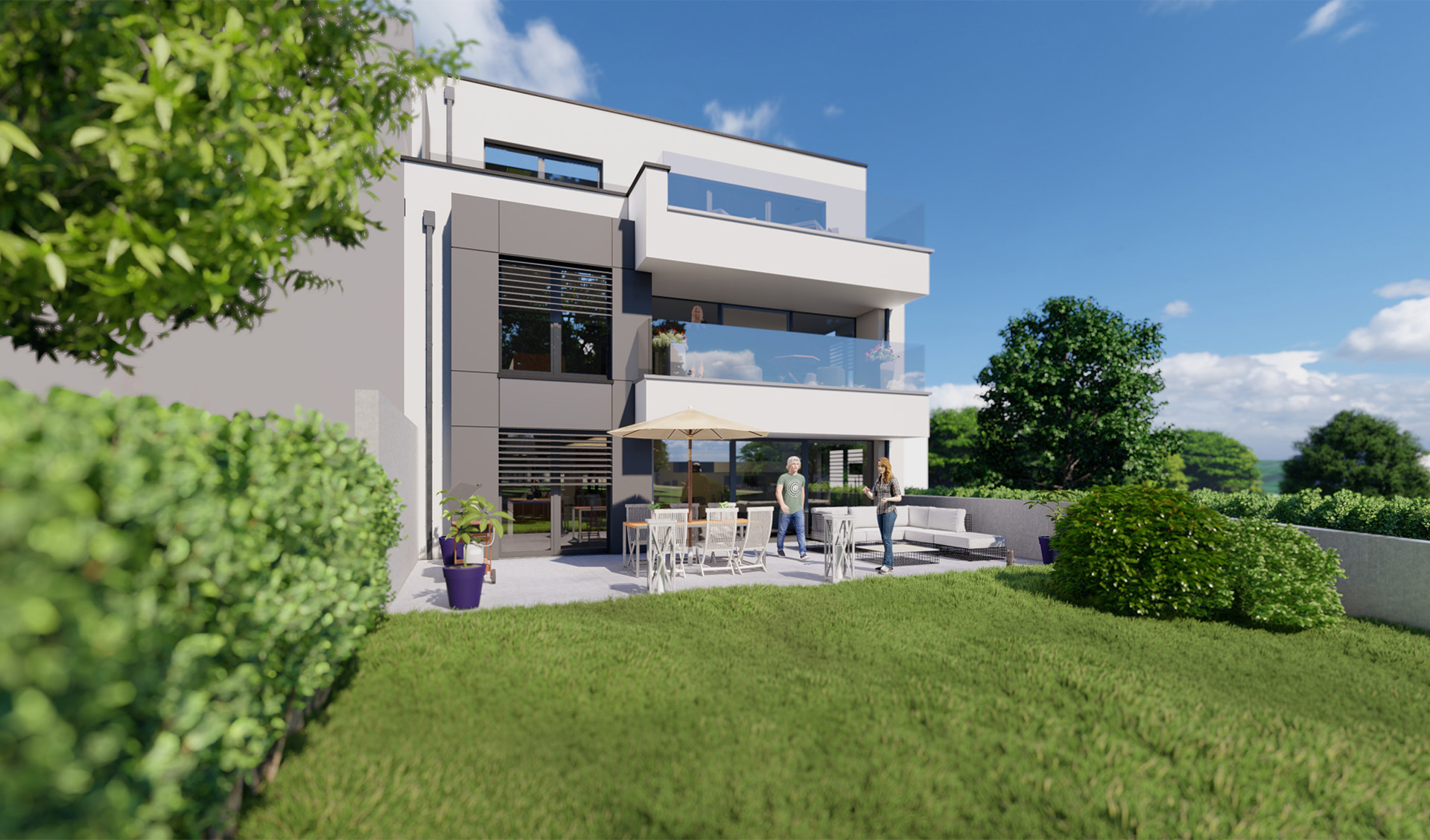 Sunset est une copropriété de 3 appartements, située dans une impasse d’un quartier résidentiel calme et verdoyant de Capellen.
